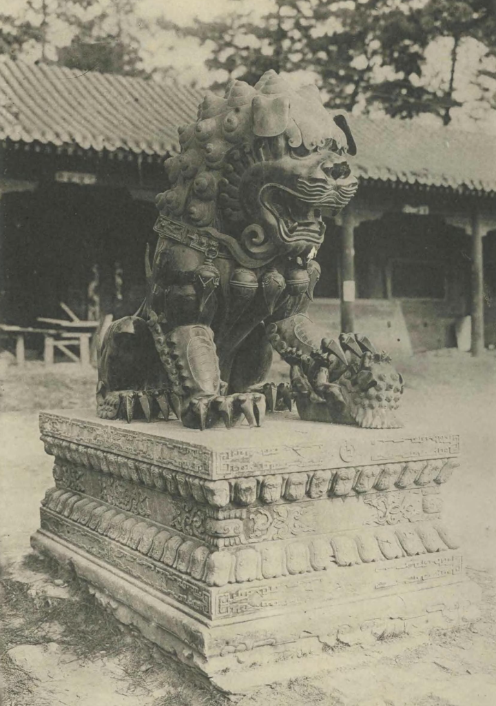 造型上,铜狮雕刻精细,比例匀称,姿态端庄又不乏生动。雄狮右爪按球,寓意“独掌乾坤”;雌狮左爪抚幼狮,象征“子嗣繁盛”。这一“球”“子”结构,是典型的皇家铜狮组合,在材质的可塑性加持下,鬃毛、爪部乃至面部细节都呈现出比石狮更丰富、更柔和的质感。据游记记载,这对狮子的耳朵微垂、睫毛修长,甚至让人感到几分灵动。